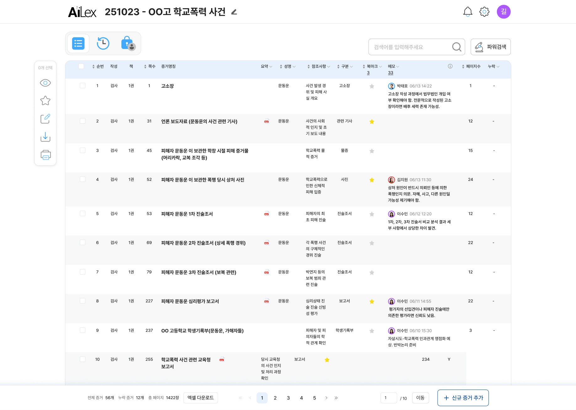 수만 페이지의 증거문서를 AI가 분석하고 정리합니다.
