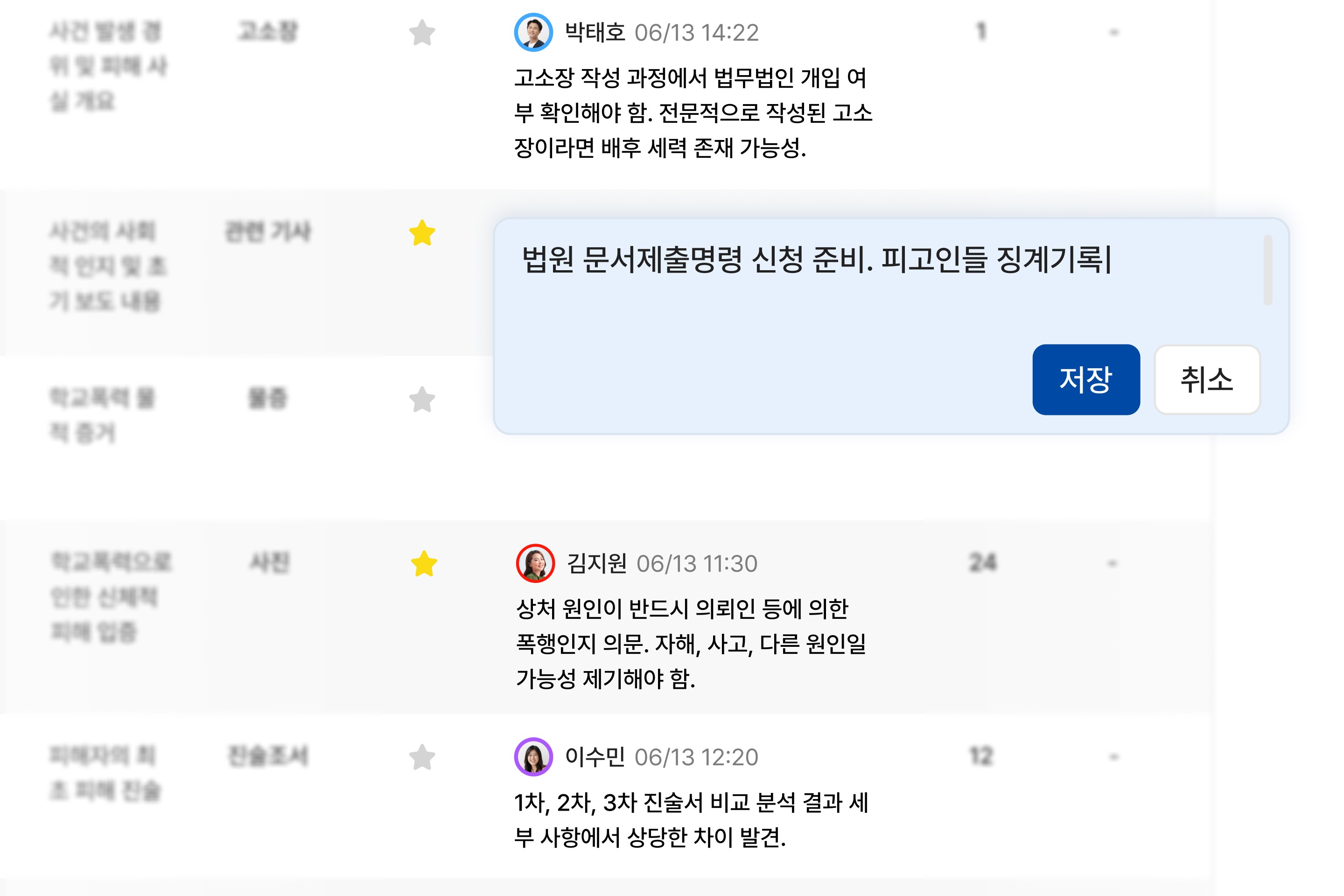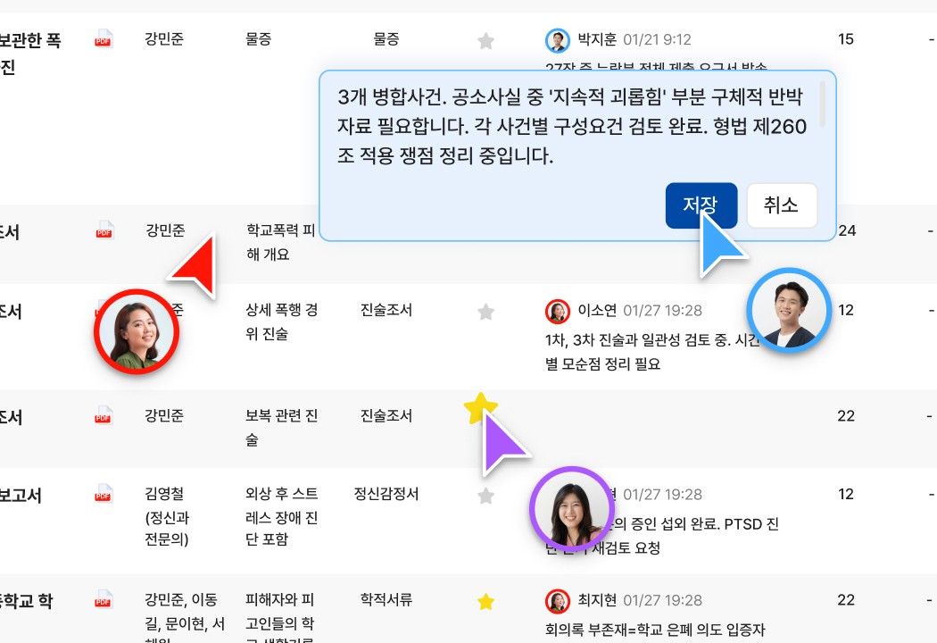 팀 내 모든 변호사가 동일한 사건 정보 공유